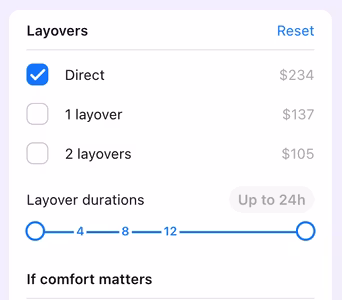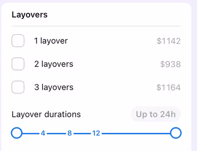 0 in the Number of layovers column.